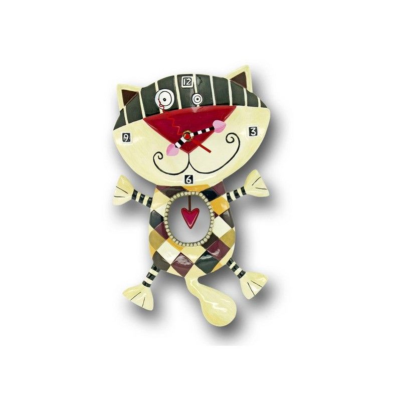 Une horloge murale en forme de chat mignon au design décalé. Avec ses rayures et sa robe en damier, vous allez l'adorer!