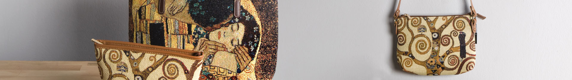 Pochettes et trousses tissées qui reproduisent les œuvres les plus célèbres ainsi que d'autres motifs conçus par des artisans
