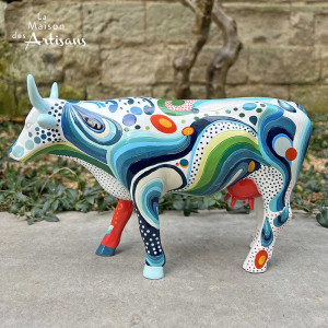 Plongez dans l'univers vibrant des années 70 avec la vache "That's 70's Cow", une création signée Henrik Kihlström pour la CowParade Signature Edition. Habillée de motifs psychédéliques, tourbillons colorés et cercles pop, cette sculpture exprime l'énergie, la créativité et l'esprit libre d'une époque marquée par l'art et la musique.