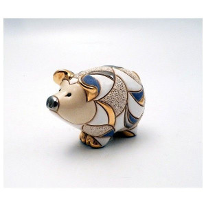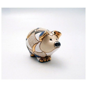 Ce cochon a été réalisé de façon artisanale avec des émaux brillants et de l'or.