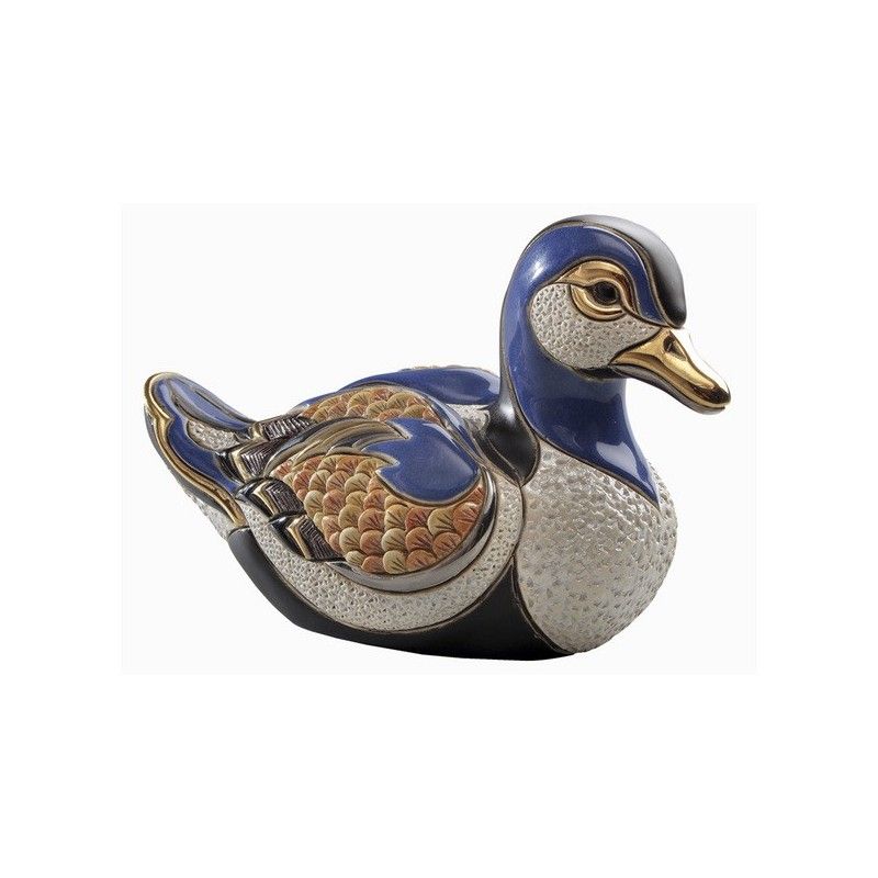 Ce canard bleu stylisé est une création originale en céramique, émaux brillants et or réalisée artisanalement par l'atelier De Rosa.