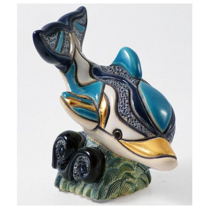 Ce bébé dauphin qui fait un plongeon est décoré de platine et d'or. Il a été réalisé main dans l'atelier De Rosa, qui perpétue un savoir-faire depuis de nombreuses années.