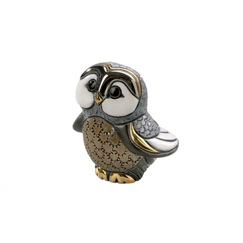 Cette petite chouette hulotte a été réalisée à la main. Elle est décorée de quelques touches d'or et possède des inclusions d'émaux.