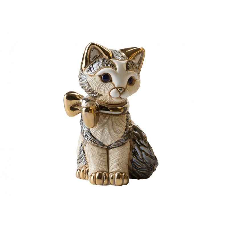 Cet adorable chaton portant un ruban rouge a été réalisé avec des émaux brillants et des touches d'or.