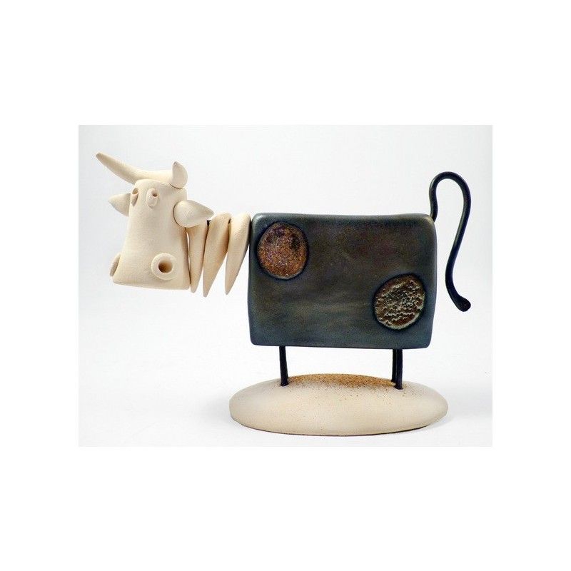 Cette vache à l'allure sympathique est un création originale en céramique émaillée réalisée de façon entièrement artisanale par l'artiste Markus.