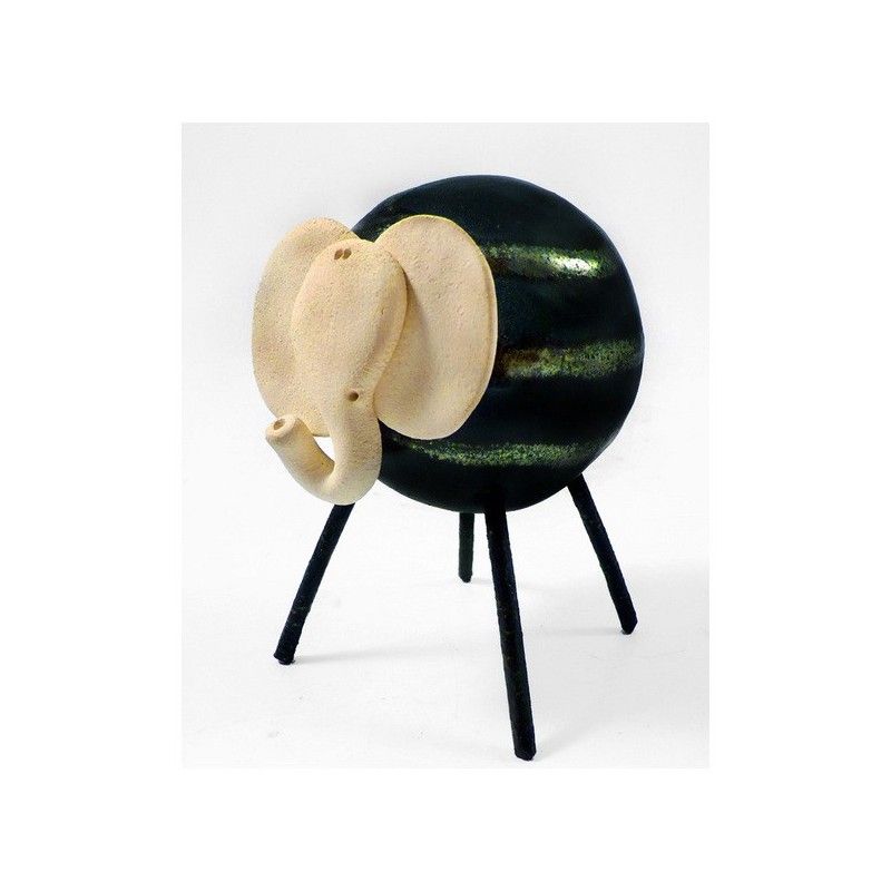 Cet éléphant à l'allure sympathique est un création originale en céramique émaillée réalisée de façon entièrement artisanale par l'artiste Markus.