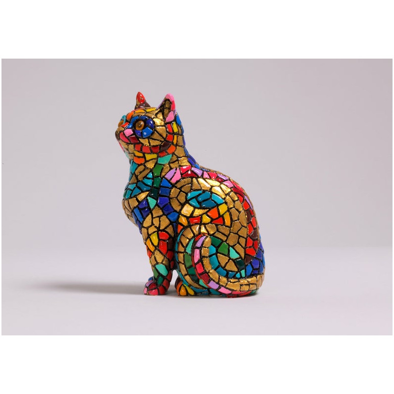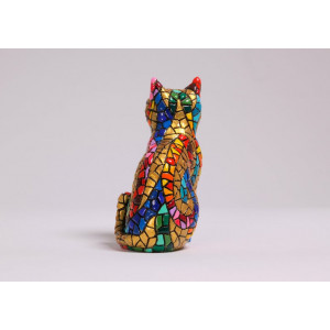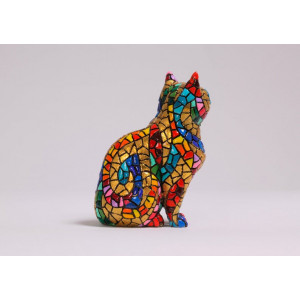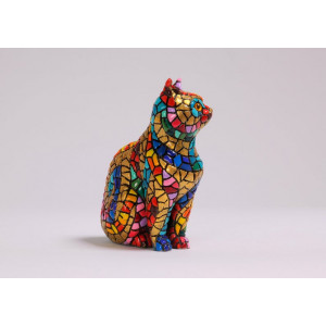 Ce chat en mosaïque Carnaval de style "Trencadis" est une création originale et entièrement réalisée à la main, issue des collections de l'atelier espagnol Barcino.