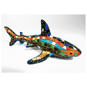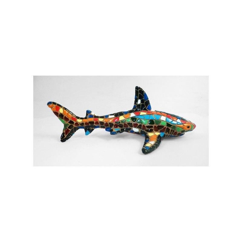 Ce requin en mosaïque de style "Trencadis" est une création originale et entièrement réalisée à la main, issue des collections de l'atelier espagnol Barcino.