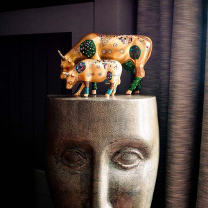 D'après la vache décorée par l'artiste Annabel Church-Smith façon Gustav Klimt dans le cadre de l'exposition CowParade de 2004 à Manchester (Angleterre).