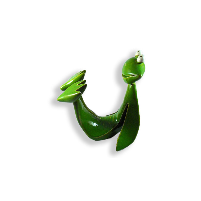 Cette grenouille verte est une création originale en céramique réalisée de façon entièrement artisanale par l'artiste Markus.