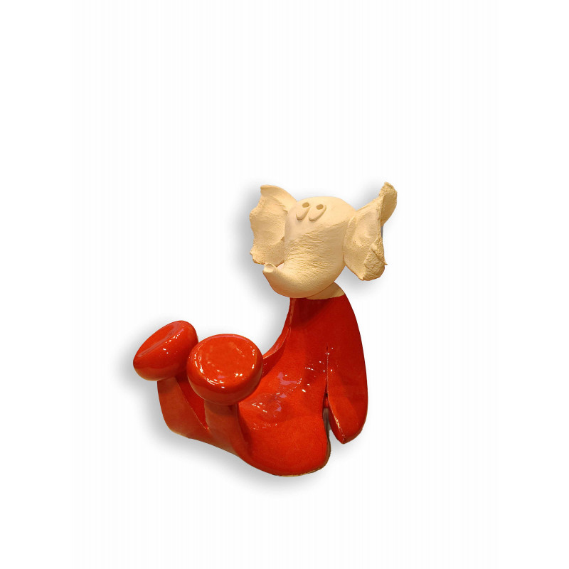 Cet éléphant sportif est une création originale en céramique émaillée réalisée de façon entièrement artisanale par l'artiste Markus.