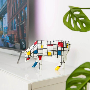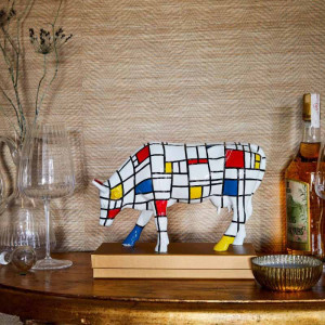 D'après la vache décorée par l'artiste Piet Mondriaan dans le cadre de l'exposition Cowparade de 2000 à New York.