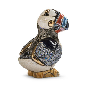 Entièrement réalisé à la main, en céramique émaillée avec des touches d'or véritable, ce bébé macareux saura vous charmer!