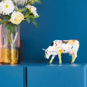 D'après la vache décorée par l'artiste Alejandra Corral de la Serna alias Kuska dans le cadre de l'exposition Cowparade de 2009 à Madrid.