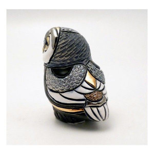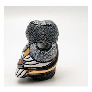 Cette figurine a été réalisée à la main. Elle est décorée de quelques touches d'or et possède des inclusions d'émaux.