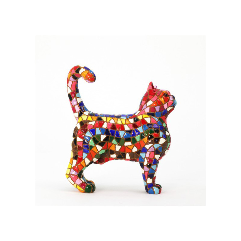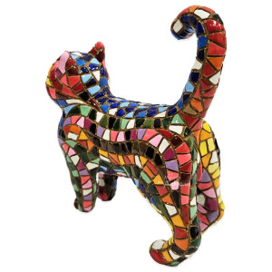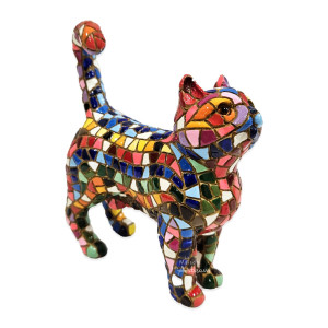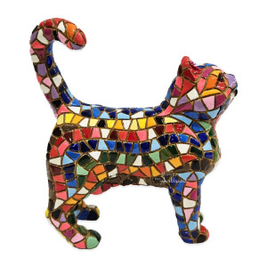 Ce chat en mosaïque de style "Trencadis" est une création originale entièrement réalisée à la main, issue des collections de l'atelier espagnol Barcino.