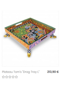 Tom’s Drag est une entreprise fondée par Tom Hoffman et Arno Muller en 1988. A la mort subite de l’artiste en 2012, Arno Muller et l’équipe de Tom’s Drag ne baissa pas les bras, et s’engagea à faire vivre Tom à travers ses œuvres et ses idées.