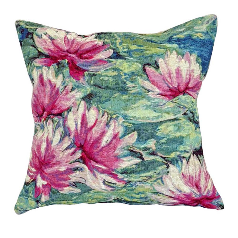 Nénuphars roses - Housse de coussin tissée