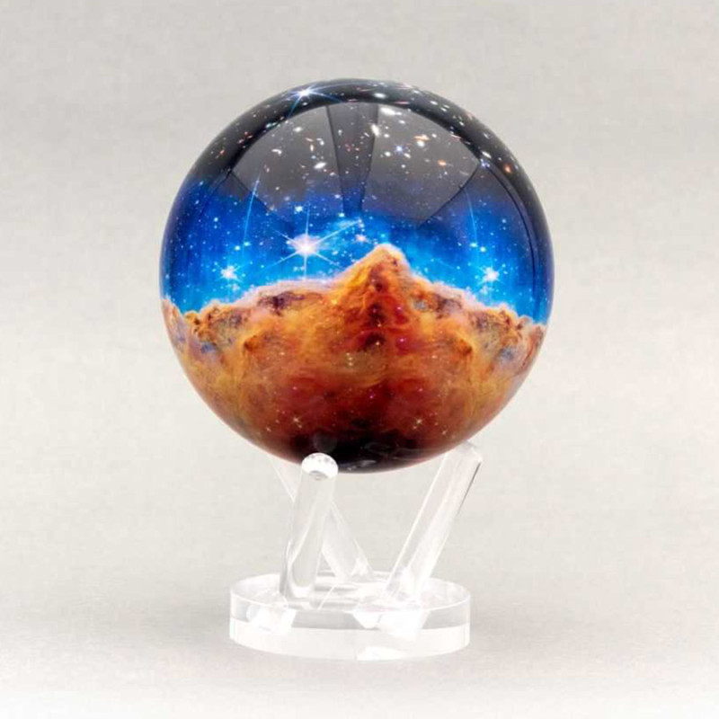 La nébuleuse de la Carène est réputée pour ses nuages de gaz et de poussière incroyablement brillants et complexes, où naissent de nouvelles étoiles. Les images haute résolution du télescope James Webb dévoilent les processus dynamiques et les structures cachées de la nébuleuse avec une clarté incroyable. Cette édition de MOVA Globes vous offre ces panoramas cosmiques époustouflants, révélant la beauté et le mystère de l'univers tout en mettant en lumière les avancées révolutionnaires de l'exploration spatiale rendues possibles par le télescope spatial James Webb.