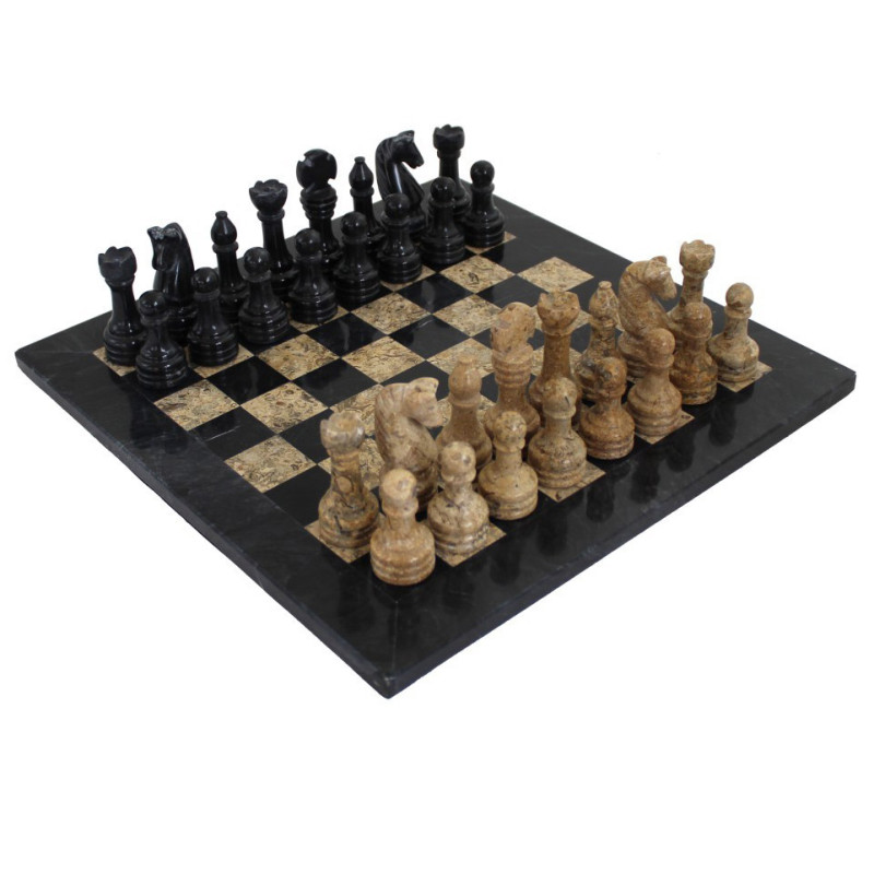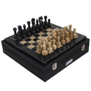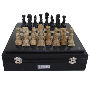 Ce jeu complet présente des pièces d'échecs en marbre, entièrement sculptées à la main. Elles rendent hommage au design intemporel de Staunton. Ce jeu d'échecs complet est livré dans sa boîte d'origine avec sa mallette en simili cuir. Laissez-vous tenter par l'élégance intemporelle du jeu d'échecs classique Staunton fabriqué à la main.