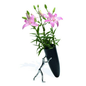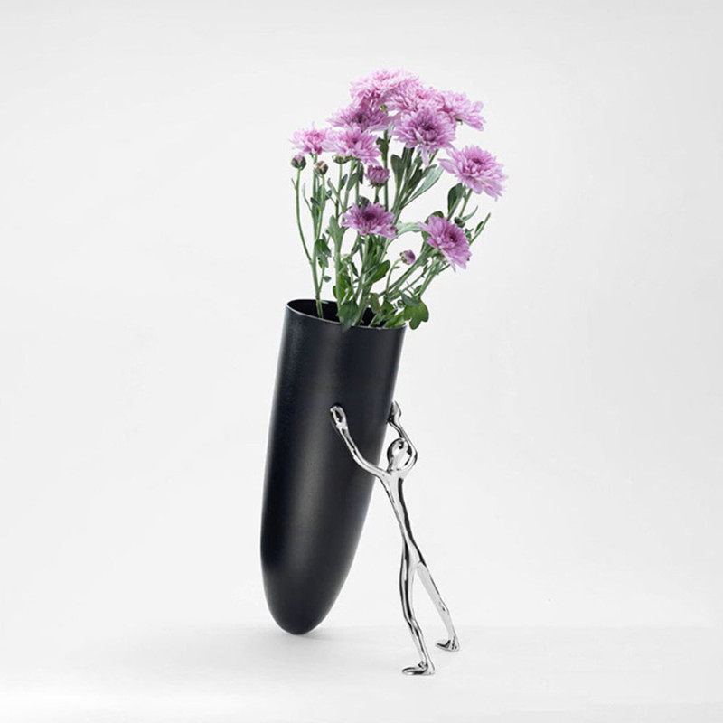 Ce petit fleuriste en herbe s'occupe de votre bouquet: le vase en aluminium noir comprend un support à l'intérieur qui dispose de façon harmonieuse les tiges des fleurs.