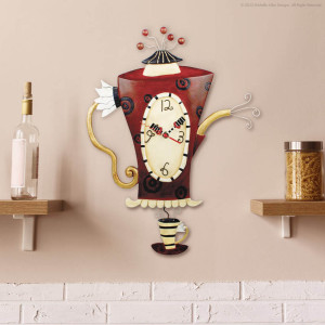 Cette horloge murale en forme de théière est parfaite pour apporter une touche originale et amusante à votre décoration! Sa couleur bordeaux se marie avec avec beaucoup d'autres couleurs, elle est donc facile à accorder à tout type d'intérieur.