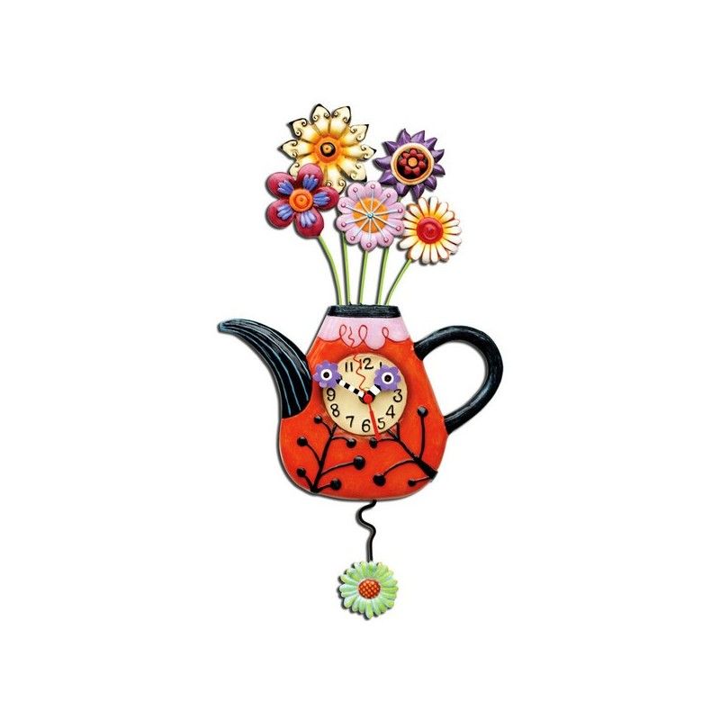 Cette horloge murale en forme de théière décorée de nombreuses fleurs à de quoi égayer toute une pièce! Ses couleurs, sa forme, ses détails et son originalité font de cette pendule une création unique en son genre!
