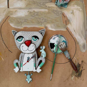 Une horloge murale au design décalé et coloré en forme de chat mignon, qui semble heureux entouré de deux souris. Une création unique qui apportera la petite touche en plus à votre décoration!