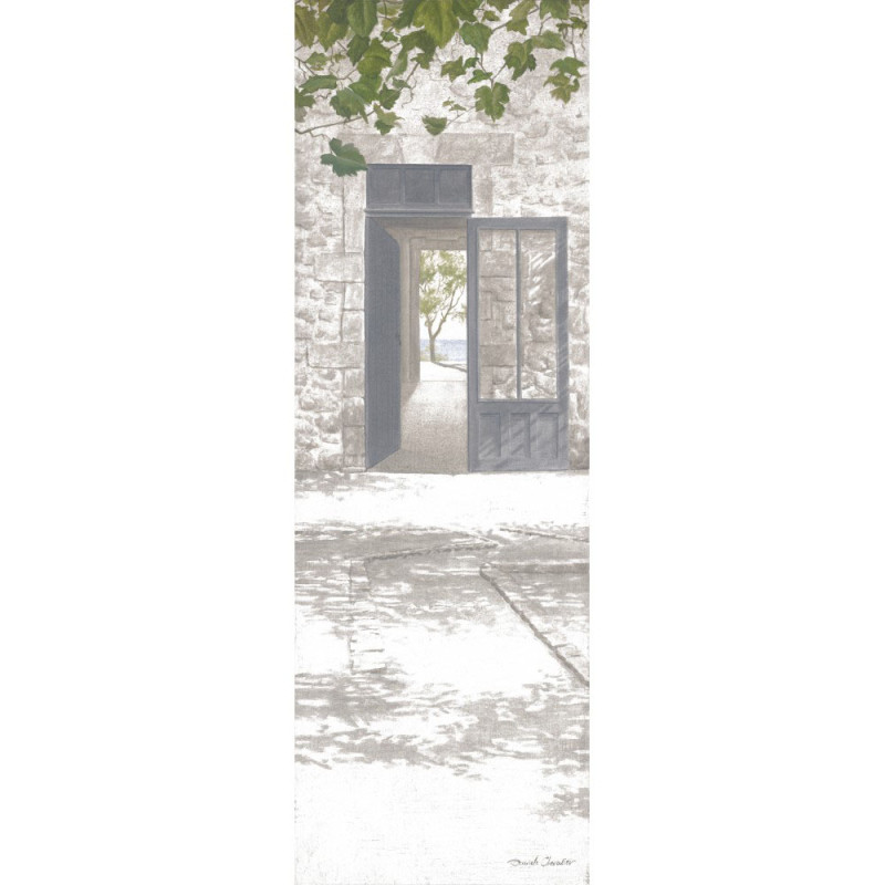 Les portes ouvertes représentent une bonne opportunité dans l'élaboration d'un trompe l'oeil à forte profondeur. Ici, au premier plan un chemin nous amène jusqu'à une porte vitrée de laquelle se dessine un couloir menant à un second plan duquel il doit être bien agréable observer l'infini de la mer...