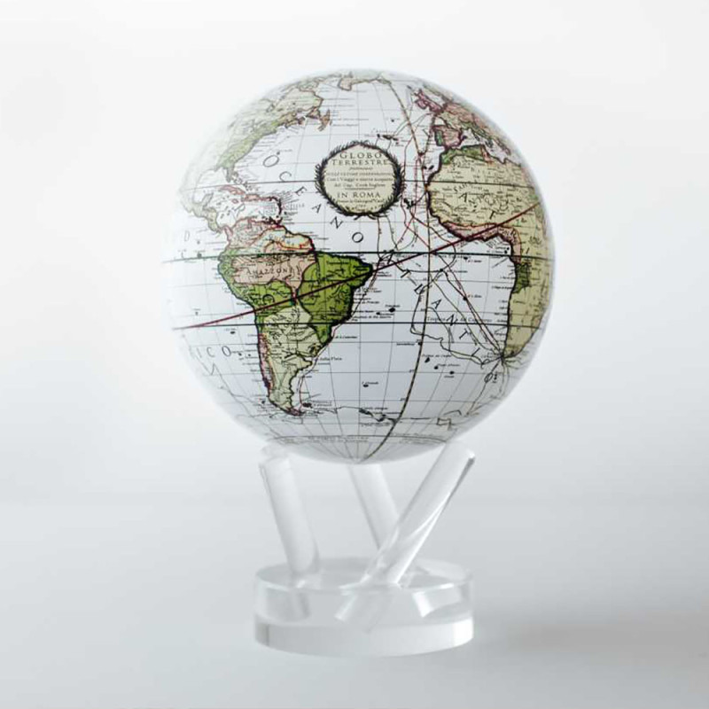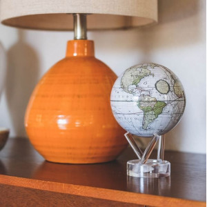 Les globes auto-rotatifs MOVA possèdent quelque chose de magique lorsqu’on les regarde tourner, en effet, aucun indice extérieur ne permet de comprendre leur mouvement de rotation perpétuel. Créés par l’atelier MOVA aux États-Unis, ils sont le fruit d’une innovation technologique exclusive associant les énergies naturelles que sont le champ magnétique terrestre, la force gravitationnelle et la lumière ambiante. D’une superbe finition, ce globe est un accessoire de décor luxueux et écologique insufflant une sensation de sérénité à n’importe quel intérieur. Totalement silencieux et ne nécessitant aucune pile ou batterie, le globe peut tourner sur n'importe quel support, y compris dans la main. Ces globes ont été conçus pour qu'ils durent très longtemps et les globes fabriqués lors du lancement fonctionnent toujours à l'heure actuelle.