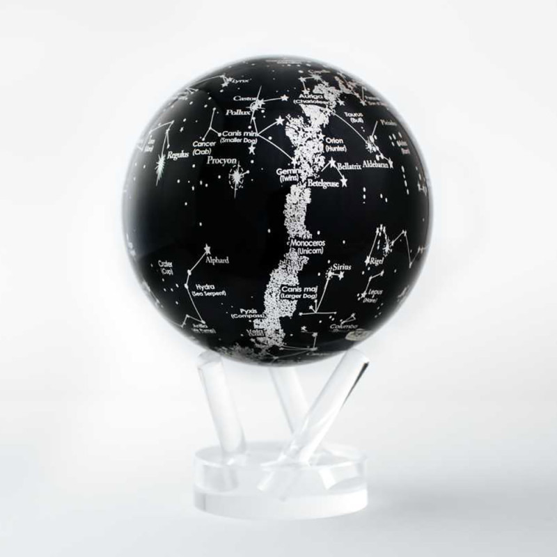 Ce globe des constellations noir & argent donne vie au royaume céleste. Il est agrémenté de nombreuses informations qui passionneront tout autant les amateurs d'astronomie que les simples contemplateurs d’étoiles. Son design spectaculaire est constitué de 88 constellations brillantes ainsi que la Voie lactée, proposant ainsi une vue éblouissante et inédite.