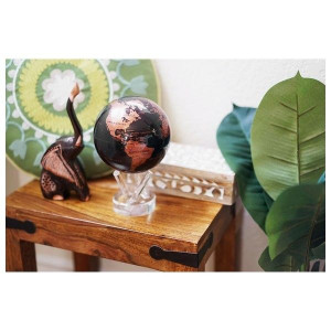 Ce globe auto-rotatif Mova prend à contre-pied la conception traditionnelle des globes grâce à un parti pris résolument design et contemporain. Le vif contraste entre les masses terrestres en cuivre et les océans noir-ébène en fait une composition saisissante qui est à la fois brillante et sobre, facilement adaptable à de nombreuses décorations d'intérieur.