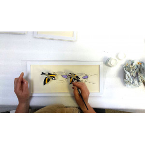 Andrew et Vida Pain ont lancé leur atelier en 2010 avec l'idée de réaliser une belle collection d'illustrations originales. Grands amoureux de la nature, de la campagne et des animaux, le couple y puise chaque jour son inspiration pour créer des dessins irrésistibles. Le jeu de transparence, d'ombre et de relief entre la peinture sur verre et l'encadrement offre un joli rendu !