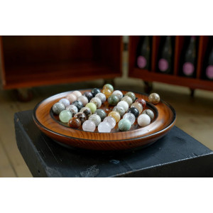 Règles du jeu: Le jeu se joue avec 36 billes. Le but est d'éliminer toutes les billes sauf une, qui devrait idéalement se retrouver au centre du plateau de jeu.