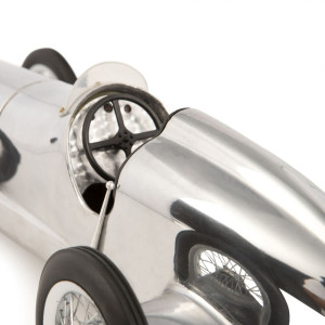Modèle réduit de la "Flèche d'Argent" ("Silberpfeil" en allemand), nom donné aux célèbres voitures de course (Mercedes-Benz et Auto Union) ayant dominé les Grands Prix dans la fin des années 30.