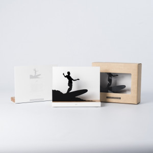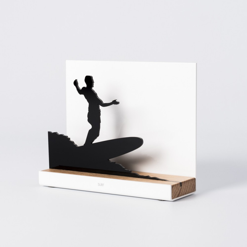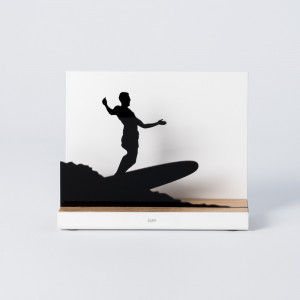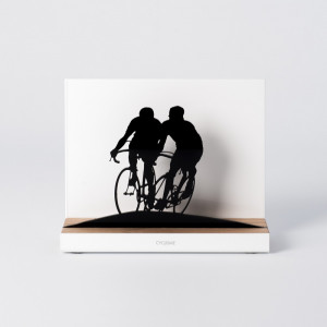 Que vous soyez supporter, joueur ou simplement passionné de sport, ces décorations ne vous laisseront pas insensibles! L'atelier basque qui fabrique ces créations originales a pour principale source d'inspiration l'évocation du souvenir. On se remémore tous un bel évènement autour du sport: un instant convivial lors d'un match, un moment d'échange et de partage, ou encore une victoire personnelle ou en équipe dont on est fier. De beaux matériaux sont utilisés: la structure est en acier laqué en blanc et la base en bois de chêne, où est insérée une silhouette noire pour un jeu d'ombre très sympa!