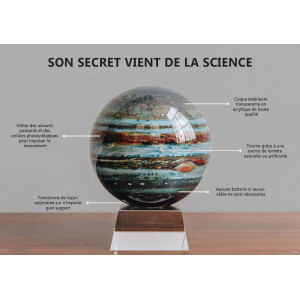 Les globes auto-rotatifs MOVA possèdent quelque chose de magique lorsqu’on les regarde tourner, en effet, aucun indice extérieur ne permet de comprendre leur mouvement de rotation perpétuel. Créés par l'ingénieur californien Bill French, ils sont le fruit d’une innovation technologique exclusive associant les énergies naturelles que sont le champ magnétique terrestre, la force gravitationnelle et la lumière ambiante. D’une superbe finition, ce globe est un accessoire de décor luxueux et écologique insufflant une sensation de sérénité à n’importe quel intérieur. Totalement silencieux et ne nécessitant aucune pile ou batterie, le globe peut tourner sur n'importe quel support, y compris dans la main. Ces globes ont été conçus pour qu'ils durent très longtemps et les globes fabriqués lors du lancement fonctionnent toujours à l'heure actuelle.