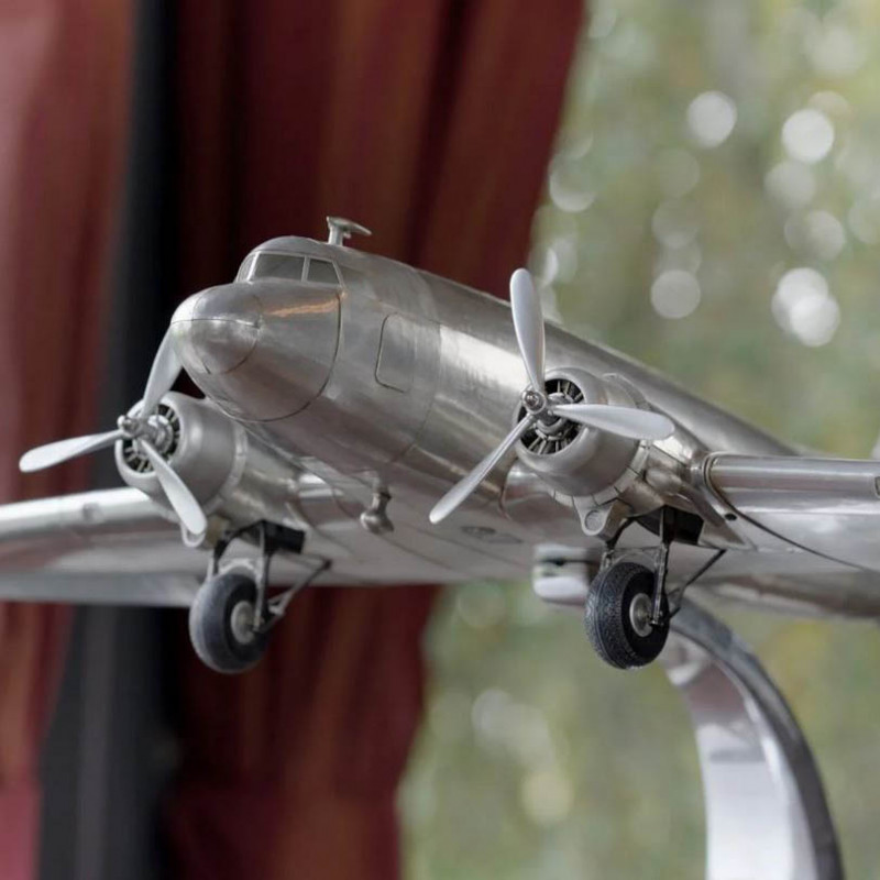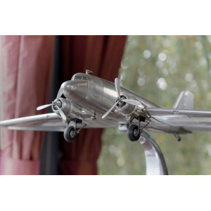 Le Douglas DC-3 a été conçu par la compagnie américaine Douglas Aircraft entre 1936 et 1945. Sa vitesse et son rayon d'action révolutionnèrent le transport aérien. Certains volent encore dans des contrées reculées comme l’Amazonie ou le désert de Gobi. Avec ses plaques métalliques et ses rivets. Hublots, moteurs extrêmement détaillés, hélices, train d’atterrissage, ailerons.