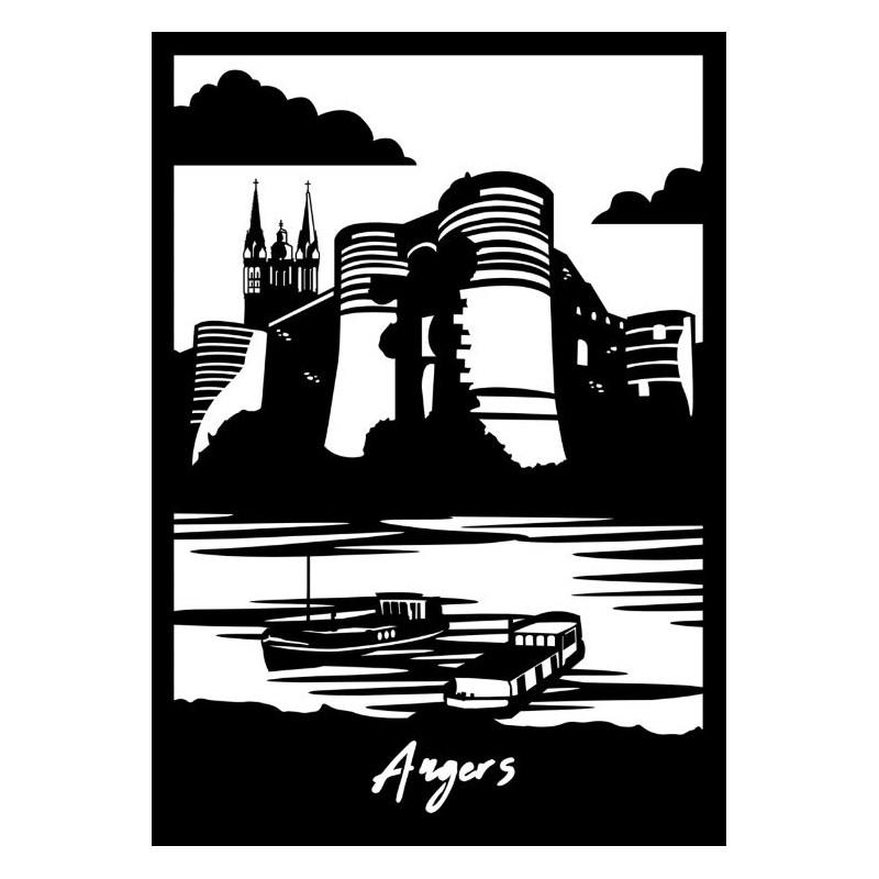 Un mur tristement vide, vous cherchez une idée pour le mettre en valeur... Cette décoration murale en acier découpé reprenant les lignes de la ville d'Angers dévoile de jolis jeux d'ombres tout en partageant quelque chose qui vous tient à coeur. Elle offre une belle vue bien connue depuis les bords de la Maine, d'où on peut admirer deux monuments emblématiques de la ville: la cathédrale Saint-Maurice et le château d'Angers.