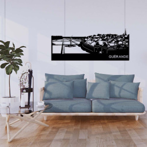 Un mur tristement vide, vous cherchez une idée pour le mettre en valeur... Cette décoration murale en métal découpé reprenant les lignes de la ville de Guérande dévoile de jolis jeux d'ombres tout en partageant quelque chose qui vous tient à coeur. Elle offre une belle vue imaginaire où sont regroupés de façon harmonieuse des éléments patrimoniaux caractéristiques de la ville: la cité médiévale et les marais salants.