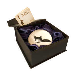 Chaque presse papier est présenté dans sa jolie boîte satinée avec la biographie de l'artiste.