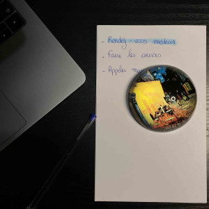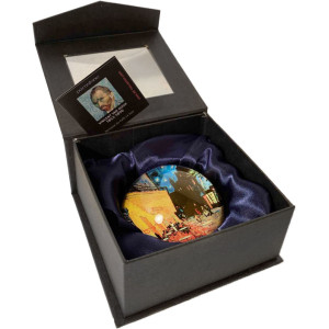 Chaque presse papier est présenté dans sa jolie boîte satinée avec la biographie de l'artiste.