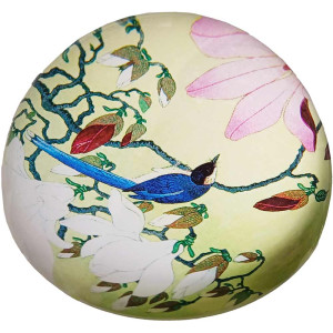 Presse-papier représentant l'œuvre "Pie et Magnolia" de l'artiste Koson. Cet artiste japonais était membre du Shin-hanga. Ce mouvement donne un second souffle à l'art des estampes traditionnelles (Ukyio-e). Il s'est consacré aux estampes populaires « kashÅ-ga », représentant des scènes d’oiseaux et de fleurs.