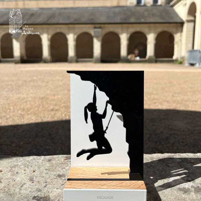 Que vous soyez supporter, joueur ou simplement passionné de sport, ces décorations ne vous laisseront pas insensibles! L'atelier basque qui fabrique ces créations originales a pour principale source d'inspiration l'évocation du souvenir. On se remémore tous un bel évènement autour du sport: un instant convivial lors d'un match, un moment d'échange et de partage, ou encore une victoire personnelle ou en équipe dont on est fier. De beaux matériaux sont utilisés: la structure est en acier laqué en blanc et la base en bois de chêne, où est insérée une silhouette noire pour un jeu d'ombre très sympa!
