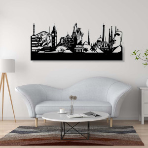 Un mur tristement vide, vous cherchez une idée pour le mettre en valeur... Cette décoration murale en métal découpé sur le thème du monde dévoile de jolis jeux d'ombres tout en partageant quelque chose qui vous tient à coeur. Elle offre une belle vue imaginaire où sont regroupés de façon harmonieuse des monuments emblématiques de plusieurs villes du monde: Londres, Venise, Sydney, New York, Paris, Barcelone... (détails plus bas). Pour tous les globe-trotteurs et passionnés de voyage, qui rêvent de découvrir les sept merveilles du monde!