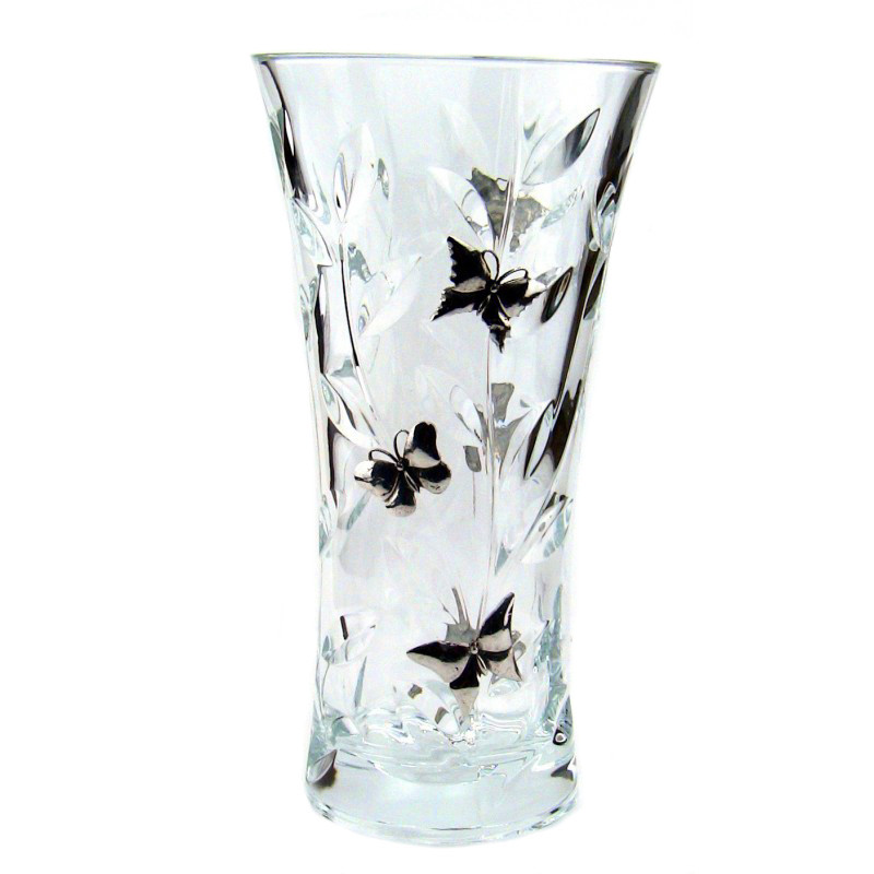 Ce vase en verre cristallin orné d'un joli décor de papillons en étain a été réalisé par l'un des derniers ateliers d'étain de France.