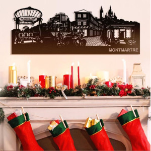 Cette décoration murale en métal découpé reprenant les lignes de la ville Paris dévoile de jolis jeux d'ombres. Elle offre une belle vue sur la basilique du Sacré Coeur, le quartier des artistes, Le Consulat, ainsi que l'entrée de métro Guimard.