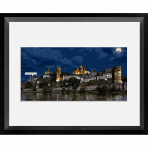 Cadre 19 x 37 cm titré en français à la main et signé par l'artiste. S'accroche facilement au mur grâce aux attaches au dos.