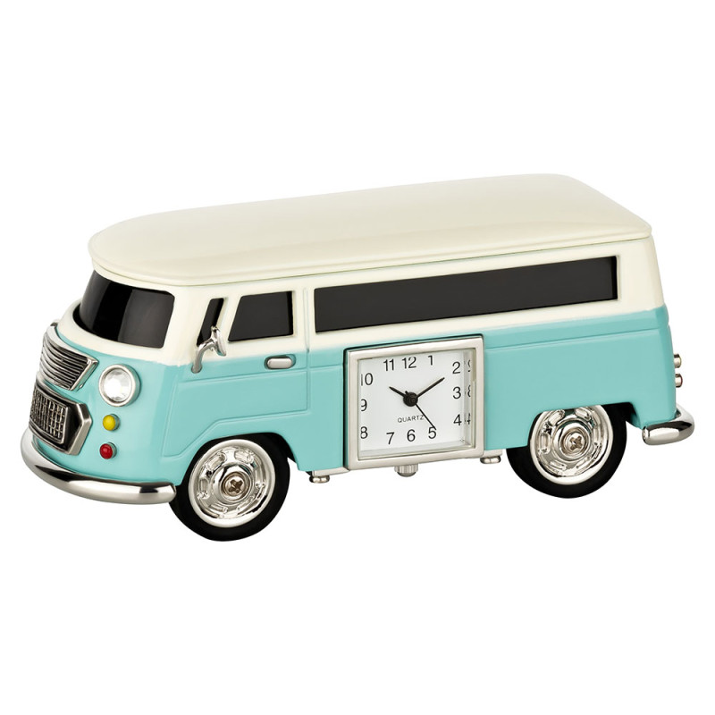 Petite horloge en forme de Combi Van couleur bleu clair.