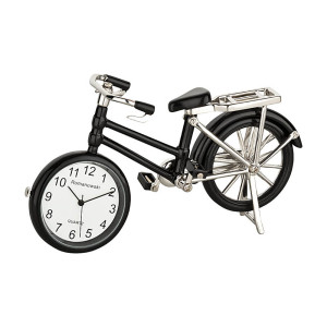 Petite horloge à poser vélo. Le mécanisme est intégré dans la roue avant. Elle apportera une touche d'originalité à votre bureau.